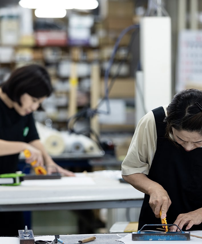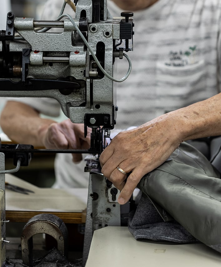 弊社では創業以来の技術を受け継ぐ熟練の職人が、手作業でひと針ずつ縫い合わせています。