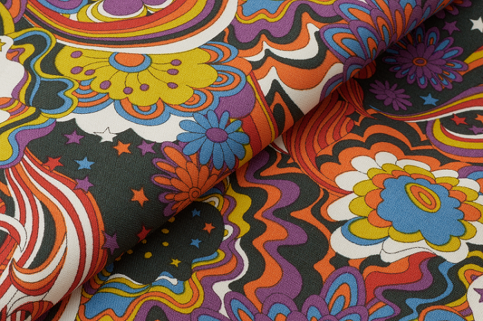 「The British Music Experience(ブリティッシュ・ミュージック博物館)」の展示からインスピレーションを得た、70年代のフラワー・パワーのモチーフをプリントした生地です。ロックミュージック好きなら見逃せないこちらのパターンは、個性あるデザインと組み合わせるのがおすすめです。