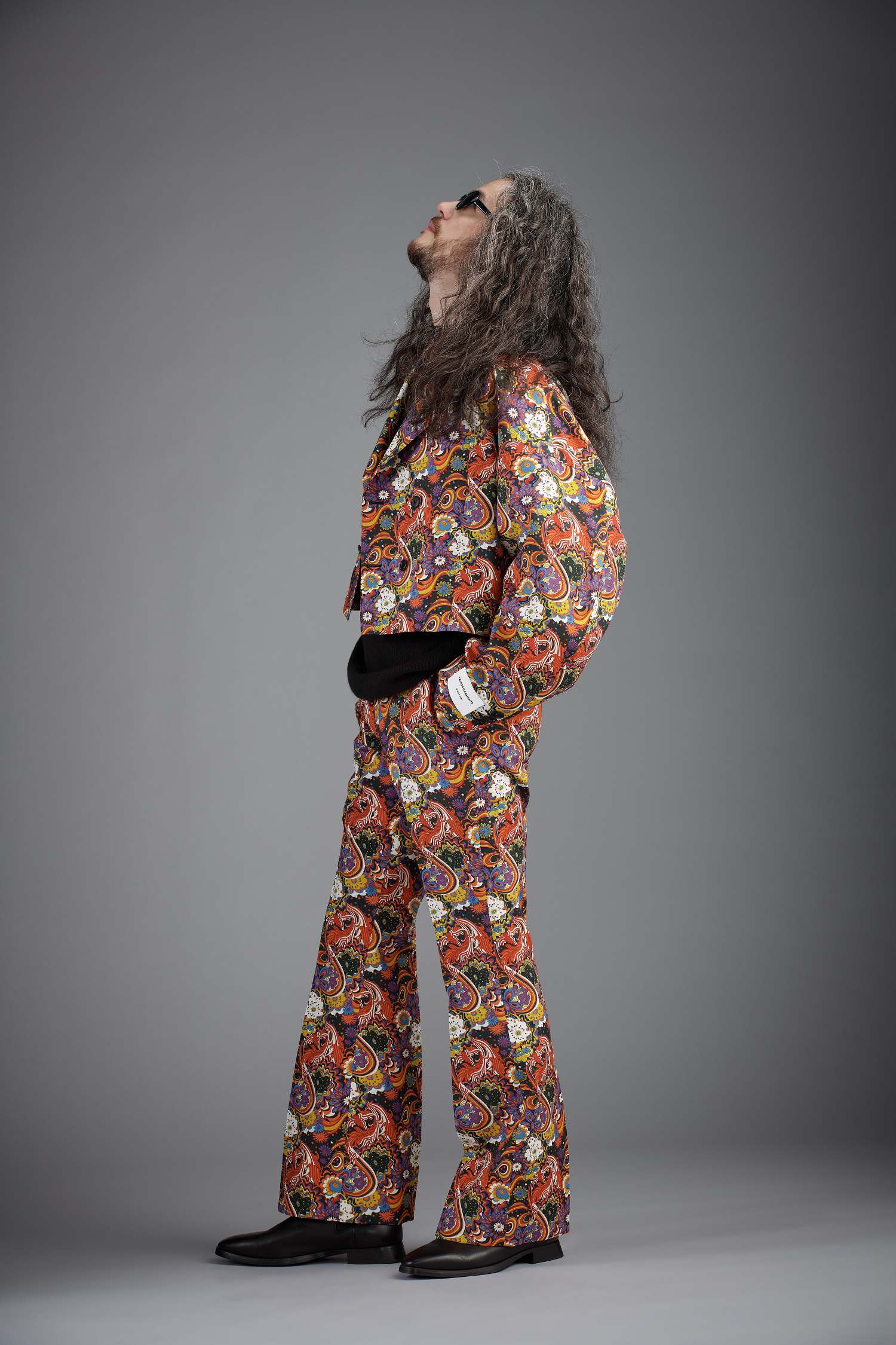 「The British Music Experience(ブリティッシュ・ミュージック博物館)」の展示からインスピレーションを得た、70年代のフラワー・パワーのモチーフをプリントした生地です。ロックミュージック好きなら見逃せないこちらのパターンは、個性あるデザインと組み合わせるのがおすすめです。