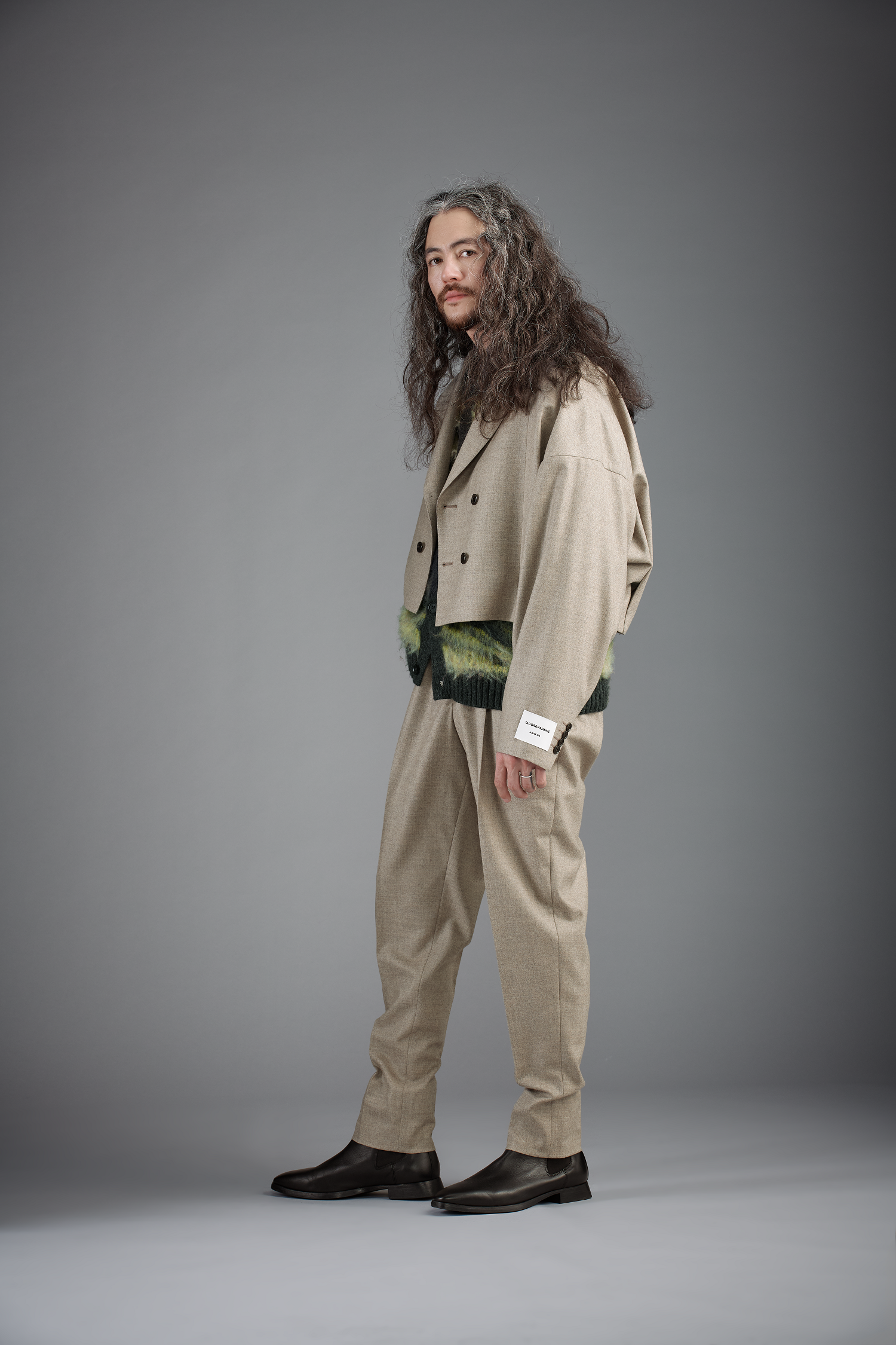 Super100'sウールを使用したストレッチフラノ。高品質原料が持つ上品な艶感としなやかな風合いが特徴です。TOP染めと呼ばれる生地を織り上げる糸の段階で染める手法を使用しているため、生地に自然なムラ感・奥行き感が生まれています。